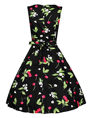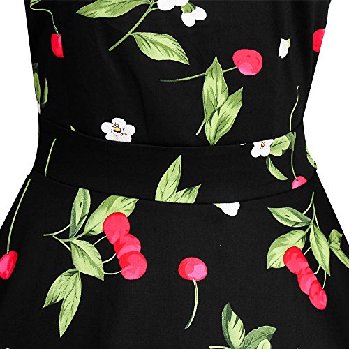 Costyleen Women's 1950s Vintage Floral Boat Neck Sleeveless Party Swing Dress with Belt