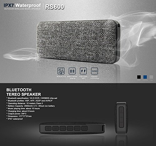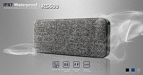 Pocket-Sized Portable Bluetooth Wireless Speaker RS600 with Power Bank. Music Playing time about 10 hours . Compatible with Smartphones, iPhones, MP3 player, etc. Weight 1lbs. Gray