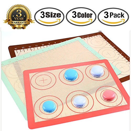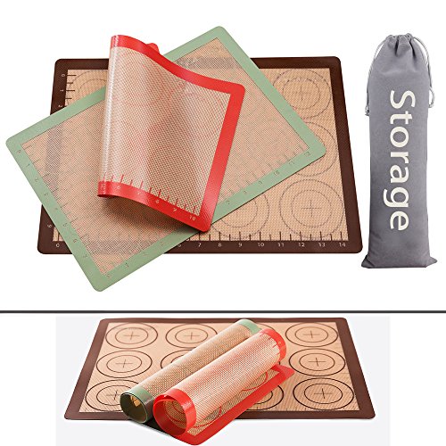 Silicone Baking Mat Measurements Circles Set of 3 With Storage Bag Non Stick Full Sheet Small Half Sheet for Cookies Sheets Fiberglass Macaron 3 Pack