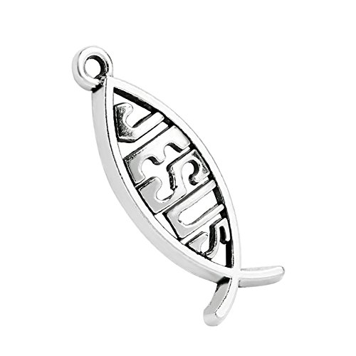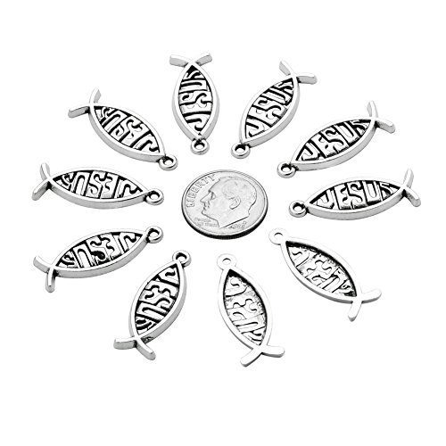 20 Pieces Guardian Jesus Fish Symbol Good Luck Charms Findings Jewelry Pendants Necklace Making 27 X 10mm