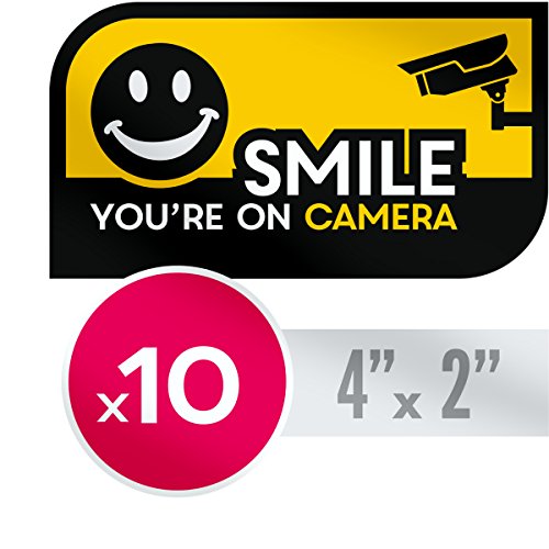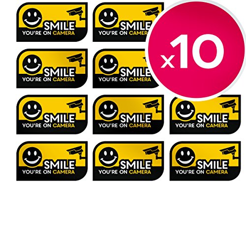 UV Resistant, No Fade Security CCTV Warning Sticker - 10 X Smile You're on Camera Decals