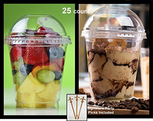 Pack of 25 Clear Plastic Parfait Cup 12 oz with Dome Lid