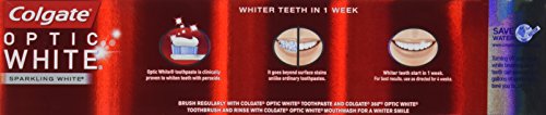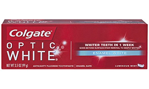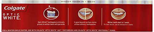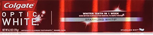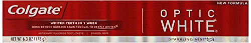 Colgate Optic White Sparkling Mint Toothpaste is specially designed to help you get a white smile while freshening your breath. It delivers whiter teeth in one week, and goes beyond surface stain removal to deeply whiten. Its enamel-safe, anticavity fluoride formula helps protect teeth from cavities while removing stains for the white, fresh smile you’ve always wanted.