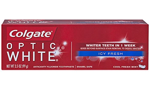 Colgate Optic White Icy Fresh Cool Fresh Mint Toothpaste goes beyond surface-stain removal to deeply whiten for a brighter smile. With regular use, this anticavity fluoride toothpaste removes stains beyond the surface that ordinary toothpastes don’t, and it has a cool fresh mint flavor to help freshen your breath.