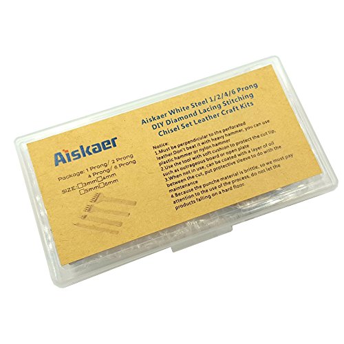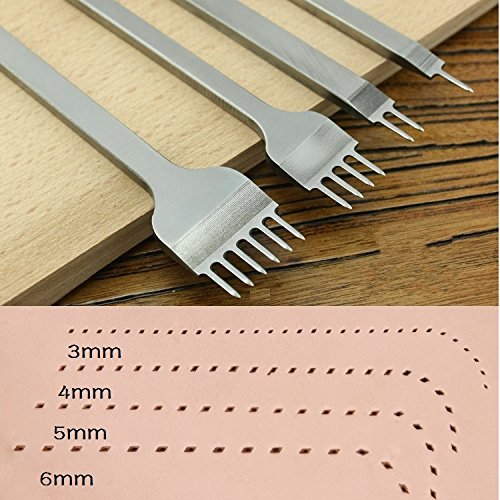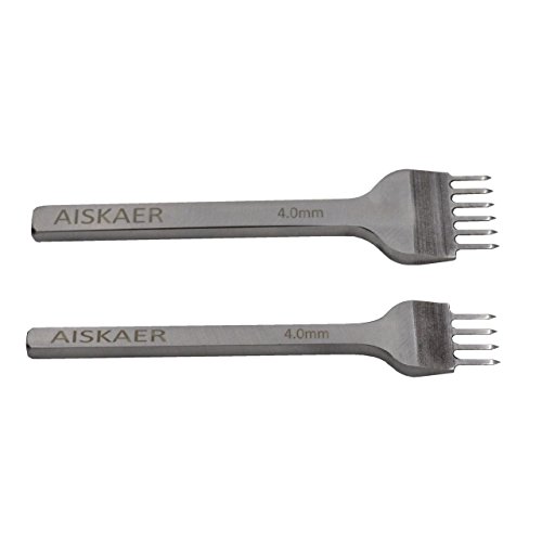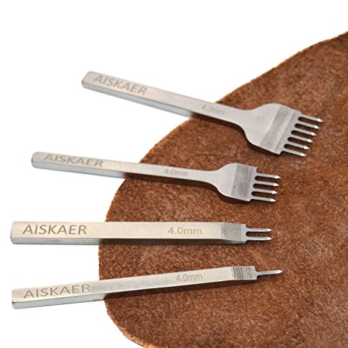 Aiskaer White Steel 4mm 1/2/4/6 Prong DIY Diamond Lacing Stitching Chisel Set Leather Craft Kits (4mm)