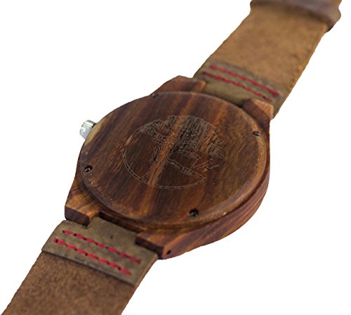 Just when you thought you'd never wear a watch again, our designers at Viable Harvest have created a unique wood watch that looks and feels great! Our wood watch is crafted with a perfect blend of natural bamboo and red sandalwood. At just under 2 inches, the faceplate is easy to see, clear and incredibly durable. With a striking black inlay and a second hand, you'll never struggle to see the time. The Japanese quartz movement will keep precise time day after day. Not only is it extremely accurate, it's super quiet and low maintenance. The battery lasts up to four years and is easily replaced. Are you tired of lugging around a heavy watch on your wrist all day? At less than 1 ounce, our watch is so lightweight, you'll almost forget it's there! The strap is 100% genuine leather and is long enough to fit almost any wrist. It's soft (no chaffing here!), easily adjustable and reinforced with strong red stitching.