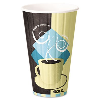 This SOLO IC16-J7534 disposable 16 oz. insulated paper hot cup with Tuscan Cafe print has a polyethylene lining for resistance to leaking and moisture penetration, and is suitable for serving coffee, tea, hot chocolate, and other hot beverages.5.4" high, has a 3.5" diameter, and is compatible with SOLO TLB316-0004, TLP316-0007, TLN316-00013, TPLUSB-0001, and TPLUS-0001 lids (sold separately).