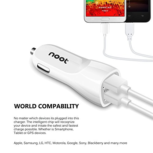 Moto G5 Plus Car Charger- Noot Products 3.1 AMP 2-Port USB Car Adapter with 4ft Micro USB Charger Cable Cord