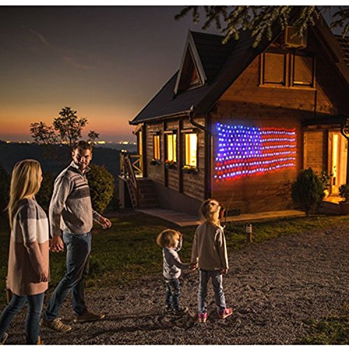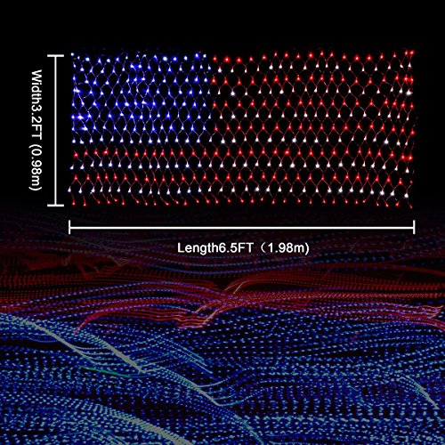 - 【COOL AMERICAN FLAG LIGHT EFFECT FOR ALL DAY DECORATION】Display your patriotic spirit with this unique LED flag net lights, Great for Memorial Day, Independence day, Christmas, festival , holiday , party, ceremony, and many other celebration occasions.American Flag Light decor design can be portable, can be suspended, the use of occasions, flexible use,put on tree, vine, porch, bedroom window, balcony, wall, bringing warm and pleasant atmosphere to your home or party.