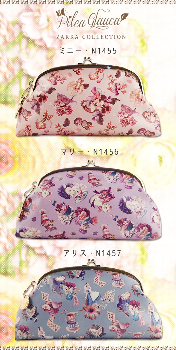大人の女性が好きな、アンティークでノスタルジックな雰囲気のがまぐちポーチです。素敵なチャームがポイントです。 製造国:中国 素材・材質:外面:ポリウレタン、内面:ポリエステル 商品サイズ:縦110×横200×厚み70mm 仕様:ポケット数:1コ ※サプライヤー直送品  ご注文後3~4営業日後の出荷となります【商品名】おとなのディズニー雑貨 ピレアグラウカ(vol.1) ポーチ 大 アリス・N1457