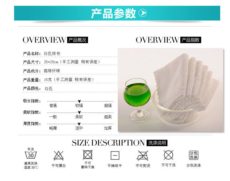 白色抹布吸水不掉毛加厚厨房洗碗布 办公室擦桌子餐厅酒店小方巾