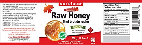 Studio : David Health Publisher : David Health Binding : Health and Beauty Product Description Nutridom Raw Honey is pure, natural, and non-pasteurized. The product is made with three distinctive blends of 100% Canadian Honey: Summer Blossom, Wildflower and Buckwheat. Our Raw Honey is non-pasteurized (non-processed) to preserve natural flavor, nutrient and healthy benefit of honey. In addition, to make just one pound of the product, a hive of 60,000 Canadian Honeybees fly the equivalent of twice around the world and visit two million flowers. 0