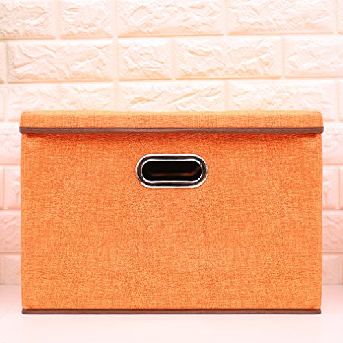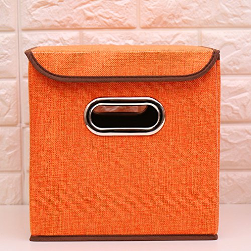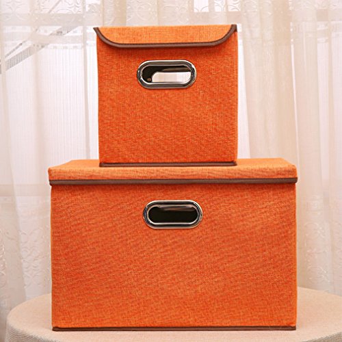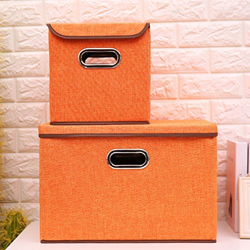 IBTHOUSE Storage bins,Foldable Storage Containers with Lid and Handles,Storage box Storage cubes Organizer, Set of 2 (orange)