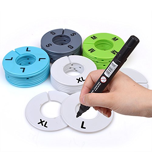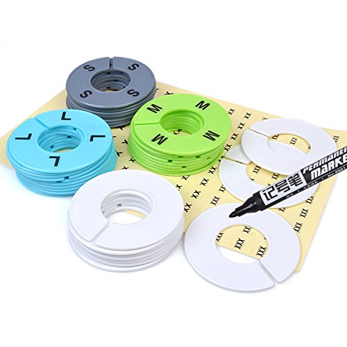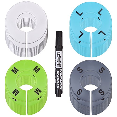 VARANO 40 Pieces 4 Colors Clothing Size Dividers Round Hangers Closet Dividers with Stickers and Marker Pen (4 Color)