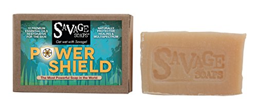 As seen on ABC's Steve Harvey's Funderdome. Savage Soaps® POWER SHIELD. Our clients worldwide have discovered that this soap not only has helped with restoring clear skin and reducing wrinkles, but also helps against environments 'BUGGED' with Flying Creatures lurking about possibly carrying a target for you! The only multi-spectrum soap of it's kind! Loaded with powerful and effective essential oils that are naturally protective & restorative. Protect yourself with Natural Peace of mind. Get wet with Savage®! Savage Soaps® are handcrafted in the highest gourmet standard carried down from ancient traditions. Ingredients: All vegetable, olive, rice bran and coconut oils; essential oils of lavender, cedarwood, lemon, pine, anise, cedar, rosemary, lemongrass, geranium, bergamot, clove, eucalyptus. Color free. Palm Oil free. DEET PABA & paragon free. Vegan. No animal products or testing. No petroleum products. Not recommended for infants. Color Free. Palm Oil Free. Vegan. Store in a cool dry place for longevity. Test skin for sensitivity to essential oils. Net Wt. 6.5 oz. No endorsement of these products by the producers of "Steve Harvey's Funderdome", MGM, or ABC is implied.Feature