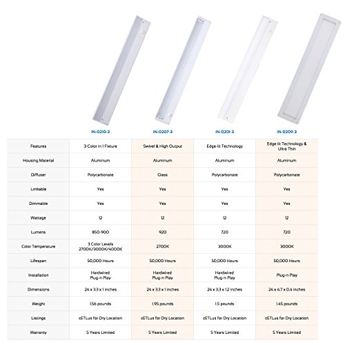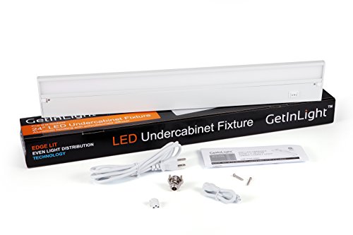 GetInLight IN-0201 series under cabinet lighting fixture features a edge illuminated technology that provides even light without the common LED spots on the counter. Perfect for highly reflective surfaces such as stainless steel and polished stone. Can be attached to the cabinet with 2 captive mounting screws, which provides a smoother installation.