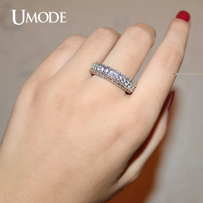 Type:Rhodium plated simulated diamond ring jewelry wedding band rings