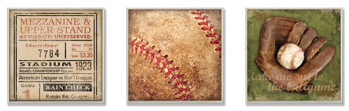 The Kids Room by Stupell Take Me Out To The Ballgame Memories 3-Pc Square Wall Plaque Set, 12 x 0.5 x 12, Proudly Made in USA