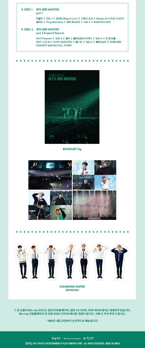 韓国スターBLU-RAY 防弾少年団(BTS) - FAN MEETING 3RD MUSTER [ARMY.ZIP+] Blu-ray (限定版/2DISC+ブックレット16P+スタンディングペーパー1種)+初回限定はがき贈呈 (予約 発売日:2017.04.20以後)