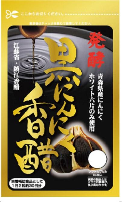 青森県のホワイト六片を熟成発酵させた発酵黒にんにくと、中国に古くから伝わる香醋を配合したカプセルタイプの栄養補助食品です