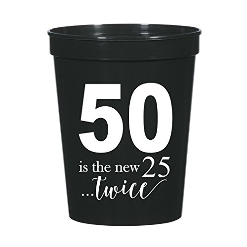 50 is the New 25 ... Twice, 50th Birthday Party Stadium Cups, Plastic Cups