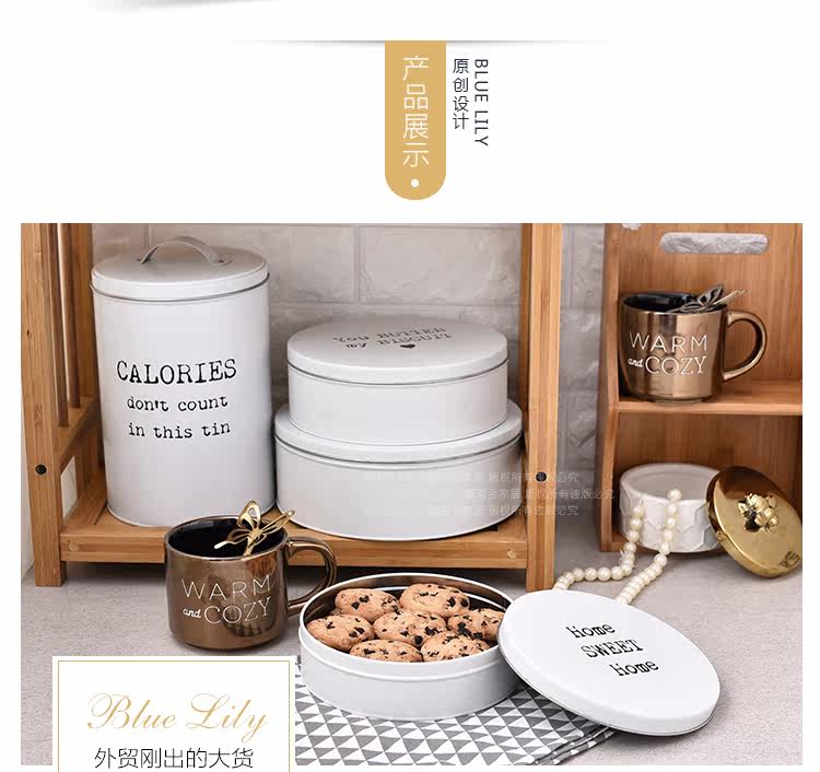 出口简约英文烤漆镀锌环保收纳盒烘焙面包饼干蛋糕礼盒置物罐