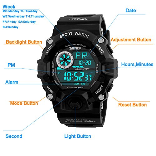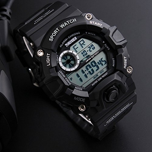 -. Title : Mens Digital Sports Watch Waterproof LED Military Wrist Stop Watch for Men,Black Digital Watch