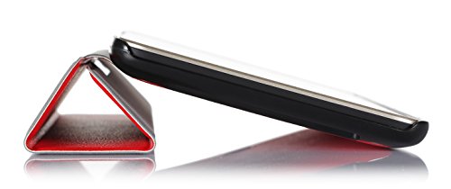 Multiple standing positions and viewing angles by rolling back the front lid; Device can be charged with case closed