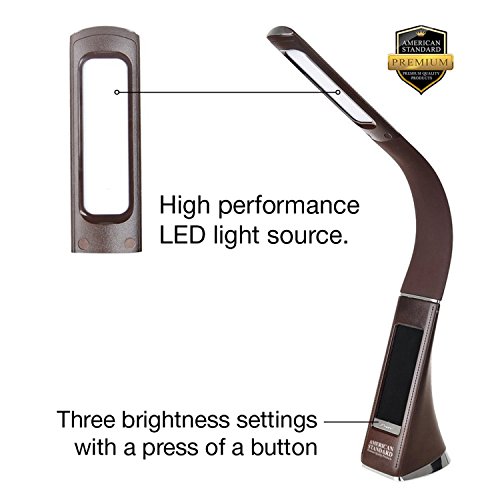 American Standard PQP Bright LED Light Desk Lamp | LCD Screen Time, Temperature & Date Display | Sleek, Adjustable Gooseneck & Sturdy Base | Office Lamp For Reading, Surfing, College & More