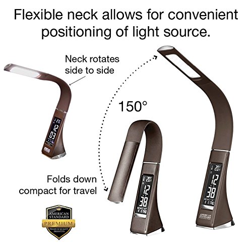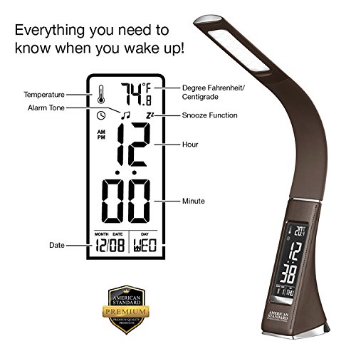 - SO MUCH MORE THAN A LAMP: Besides emitting bright eye-friendly LED light, this American Standard PQP high quality, intended to impress, office lamp has an HD VA LCD screen that displays the time, date, day of week, temperature, and alarm.