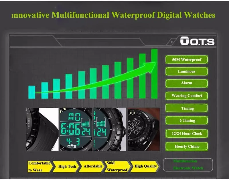 Feature:Stop Watch,Shock Resistant,LED display,Luminous,Auto Date,Complete Calendar,Water Resistant,Alarm