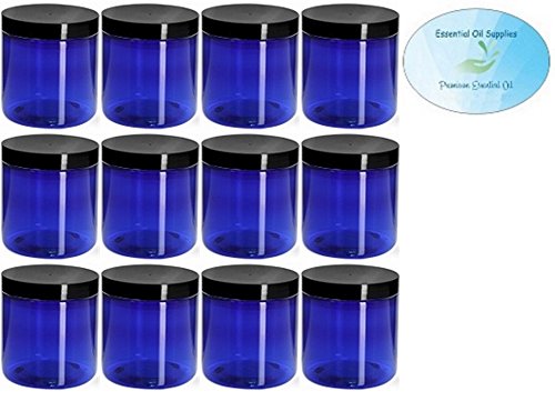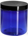 4 Ounce Cobalt Blue PET BPA-Free Plastic Empty Refillable Straight Sided Jar with Smooth Black Lids (Pack of 12)