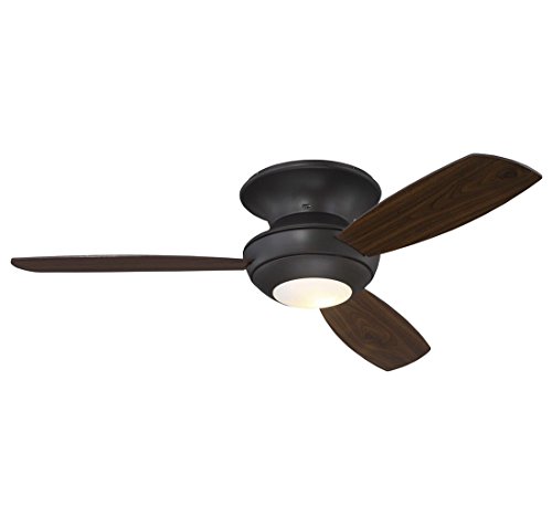 Have a low-ceilinged room but want a ceiling fan? Trade Winds can help! This hugger ceiling fan features sleek contemporary style, an oil rubbed bronze finish with walnut blades and an integrated LED downlight with frosted opal glass shade.Feature