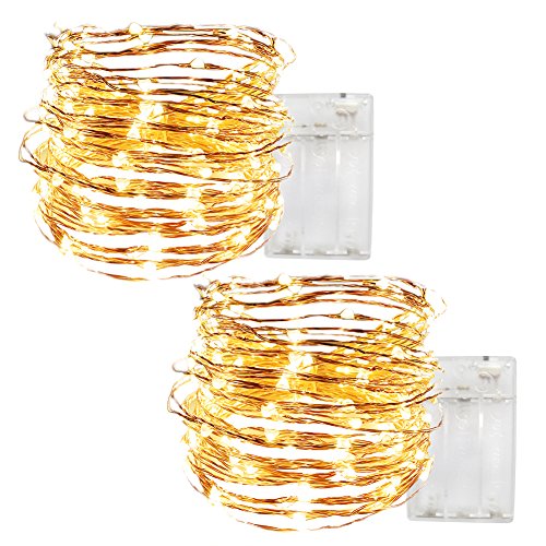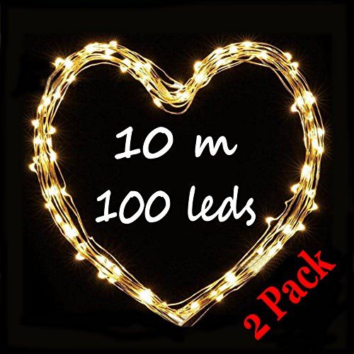 Pack of 2 Sets 33ft(10m) 100 LED String Lights Oncidium Decorative Lights Decor Rope Flexible Fairy Lights Battery Operated Perfect for Tree, Party, Bedroom, Xmas(Warm White)