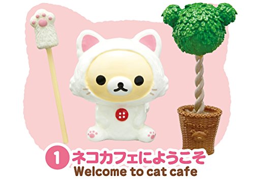 全8種よりメーカー規定の比率に従い封入。秋の新アートに合わせたネコカフェモチーフのミニチュアフィギュア。ネコの恰好をしたリラックマキャラクターのフィギュアや雑貨、食べ物がラインナップ。【ラインナップ(予定)】1、ねことふれあいタイム2、大好きキャットタワー3、仲良くランチタイム4、ねこのリラックスタイム5、ねこいっぱいスイーツメニュー6、かわいく写真撮影7、ねこcafeグッズ8、まったりティータイムFeature