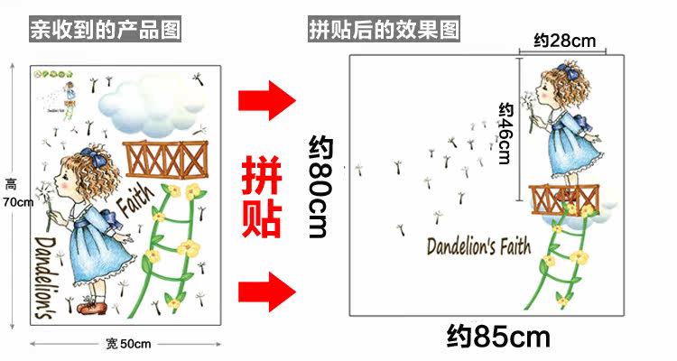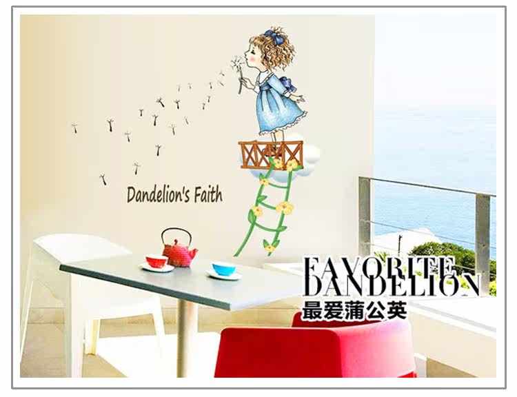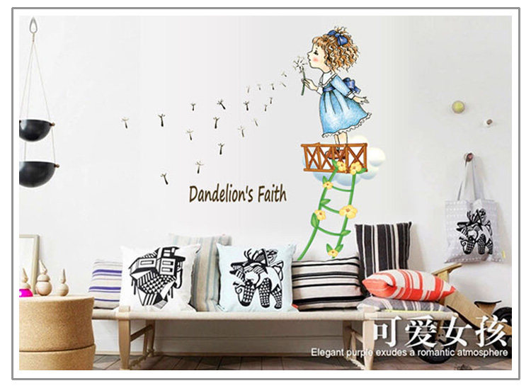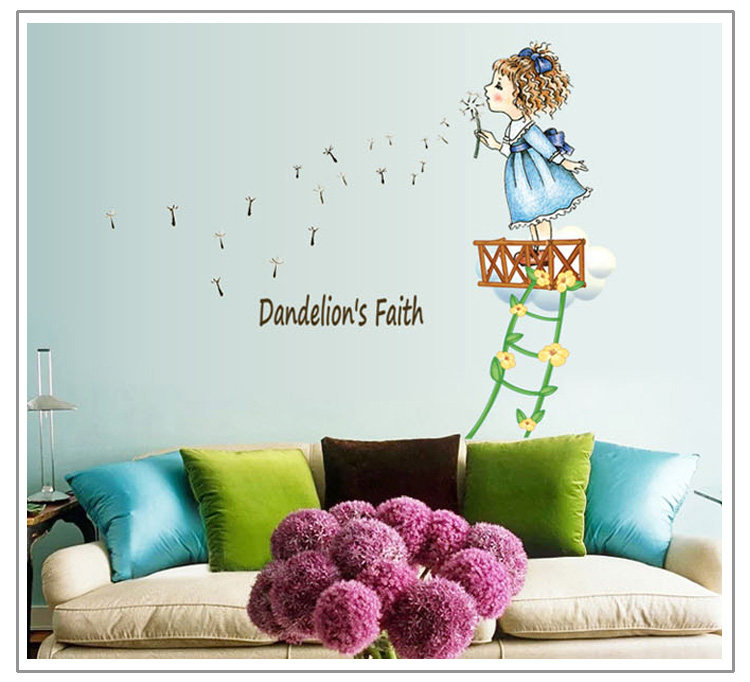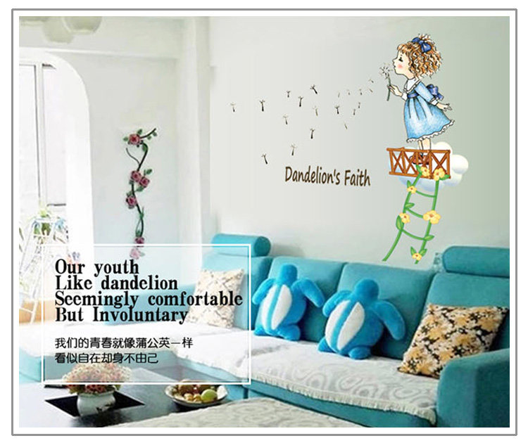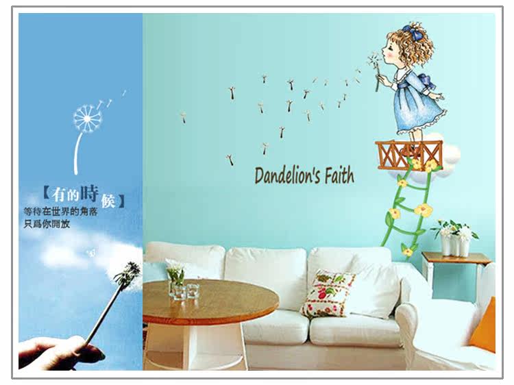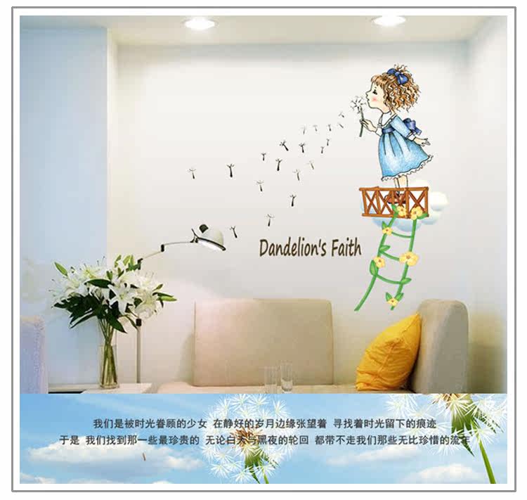 墙贴 儿童房卧室装饰幼儿园教室布置可移除墙贴纸吹蒲公英的女孩