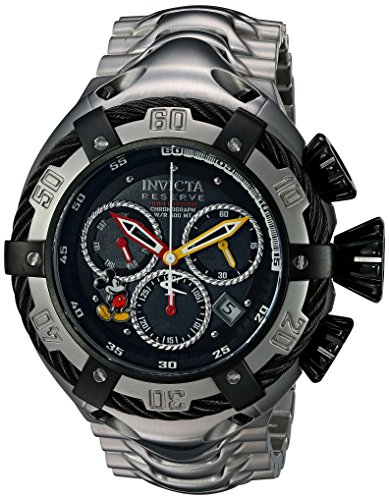 Black chronograph with Mickey Mouse and day, 60sec and 30 min sub dials with date display, Stainless steel band, Screw down crown