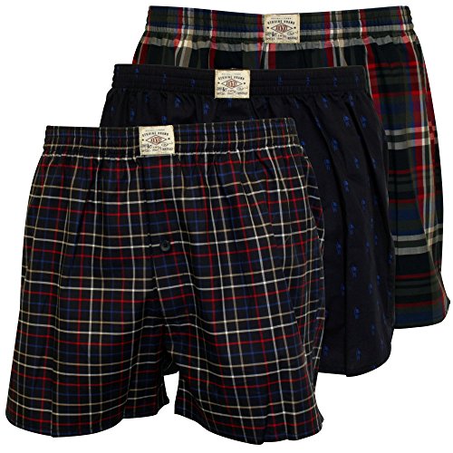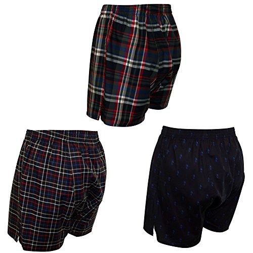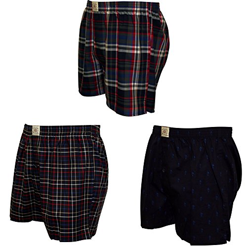 -. Title : Jockey 3-Pack Woven Men's Boxer Shorts, Navy/Blue/Red/Check