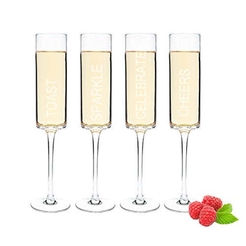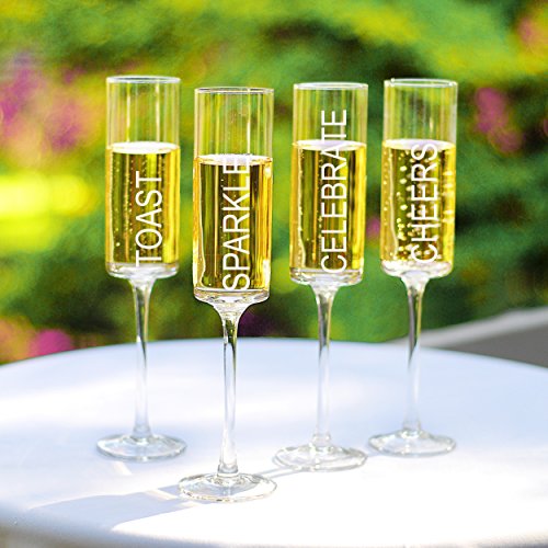 Toast your next big celebration in a class all on your own with these Celebrate. Contemporary Champagne Flutes. These sleek champagne glasses combine contemporary style with traditional appeal. The set of four modernized flutes feature square edged tops and tall stems. .