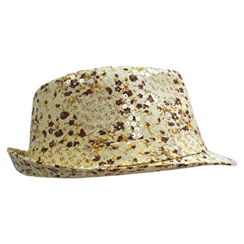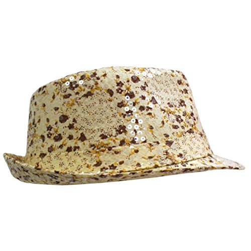 -. Title : Luxury Divas Sequin Floral Fedora Hat