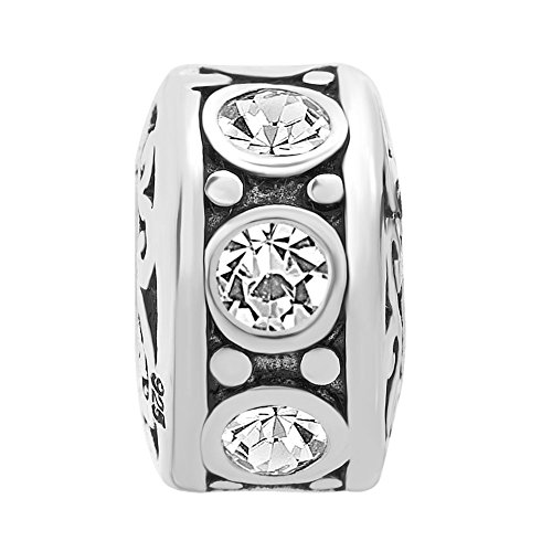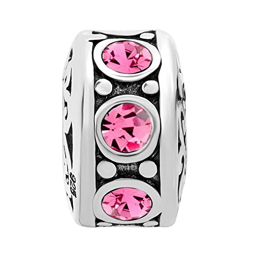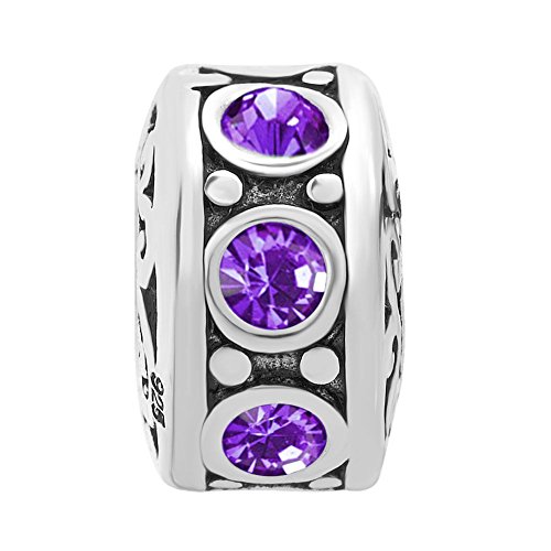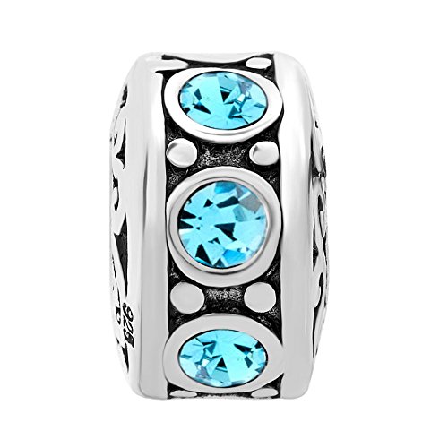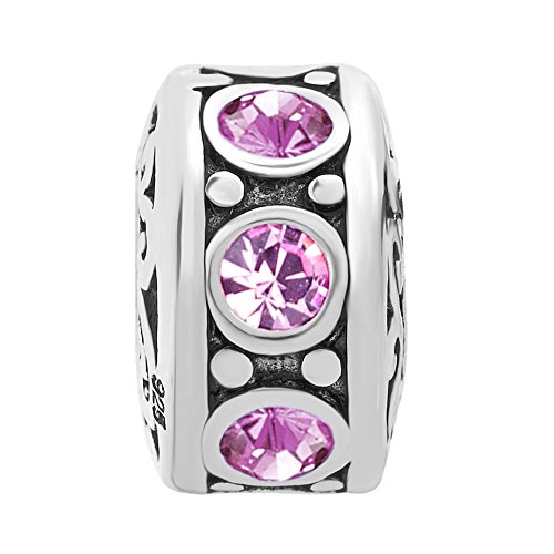 -. Title : LuckyJewelry Sterling Silver Charm Crystal Birthstone Spacer Round Beads Fit Charms Bracelet