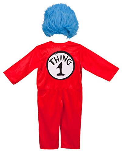-. Binding : Toy -. Brand : Dr. Seuss -. ClothingSize : One Size -. Color : multi-colored -. Department : baby-boys -. Feature : Let your fun out of the box in this Dr. Seuss Cat in the Hat Thing 1 and 2 Deluxe Kids Costume by elope / Officially licensed by Dr. Seuss Cat in the Hat / Designed with love and laughter in the USA, made in China / Made of polyester and cotton. Costume includes red and white Thing jumpsuit, blue faux fur wig, and Velcro Thing numbers 1 through 4 / Aged 3 and up. Fits most kids size small 4 to 6 -. Label : elope Inc. -. Manufacturer : elope Inc. -. MPN : EL43601 -. NumberOfItems : 1 -. PackageQuantity : 1 -. PartNumber : EL43601 -. ProductGroup : Apparel -. ProductTypeName : CHILDRENS_COSTUME -. Publisher : elope Inc. -. Size : One Size -. Studio : elope Inc. -. Title : elope Dr. Seuss Cat in the Hat Thing 1&2 Deluxe Kids Costume