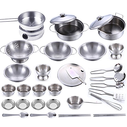 -. Title : 32Pcs Stainless Steel Children Kitchen Toys Miniature Cooking Set Simulation Tableware Toy Pretend Play Cook Toy for Kids Gift