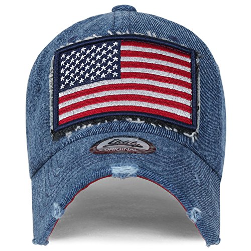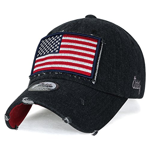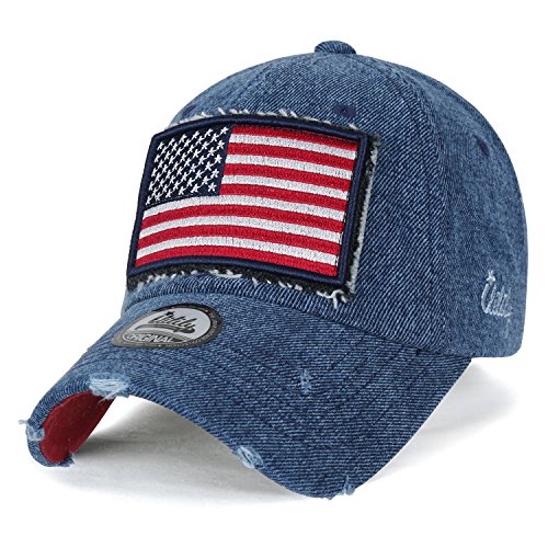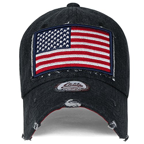 Binding : Apparel Product Description ililily USA Flag Patch Denim Cotton Vintage Distressed Baseball Cap Trucker Hat Style: classic 6 panel unstructured baseball cap with adjustable buckle strapback in BLUE or BLACK Trim/Embellishment: VINTAGE DENIM COTTON CASUAL BASEBALL CAP TRUCKER HAT with classic embroidered USA FLAG patch logo on front. ililily brand logo embriodery at side. wild life distinctive embroidery at the back of cap. simple, versatile and classic cap. a must have basic wardbrobe essential! Crown: 100% SOFT COTTON round crown to ENSURE COMFORT. round top button and eyelets. inner of cap is lined with sweatband for optimal wearing comfort. Brim: DISTRESSED RIPPED CURVED deisgn for a vintage chic look. a different inner brim color is meticulously chosen for contrast. Inner band: approx. 22.8' / 58cm / brim width: approx. 2.95'/ 7.5cm Material: 100% Cotton Wash Instruction: Do not wash, wipe with moist cloth Measurement: Medium Inner Band:7 1/4 (58cm)
