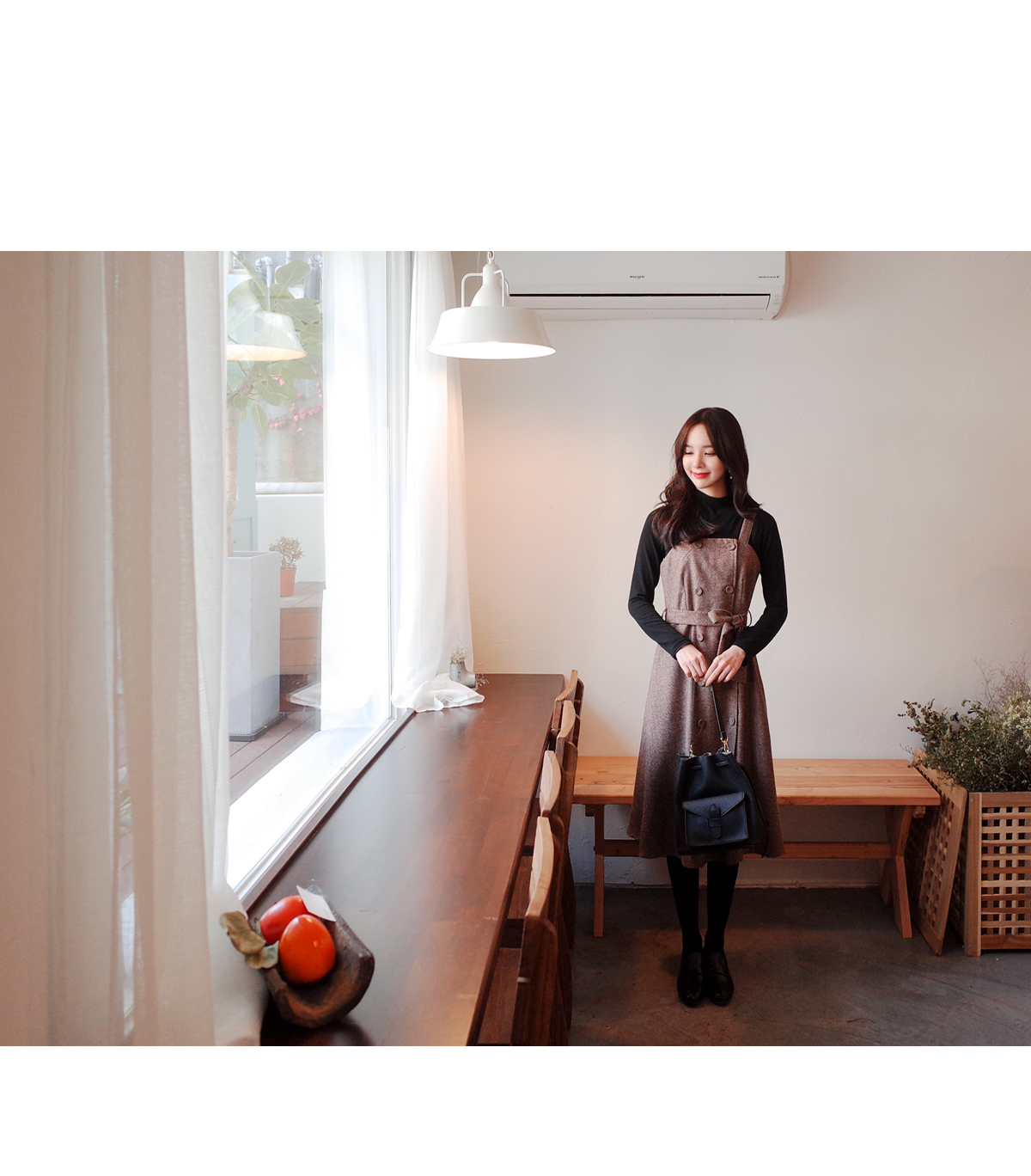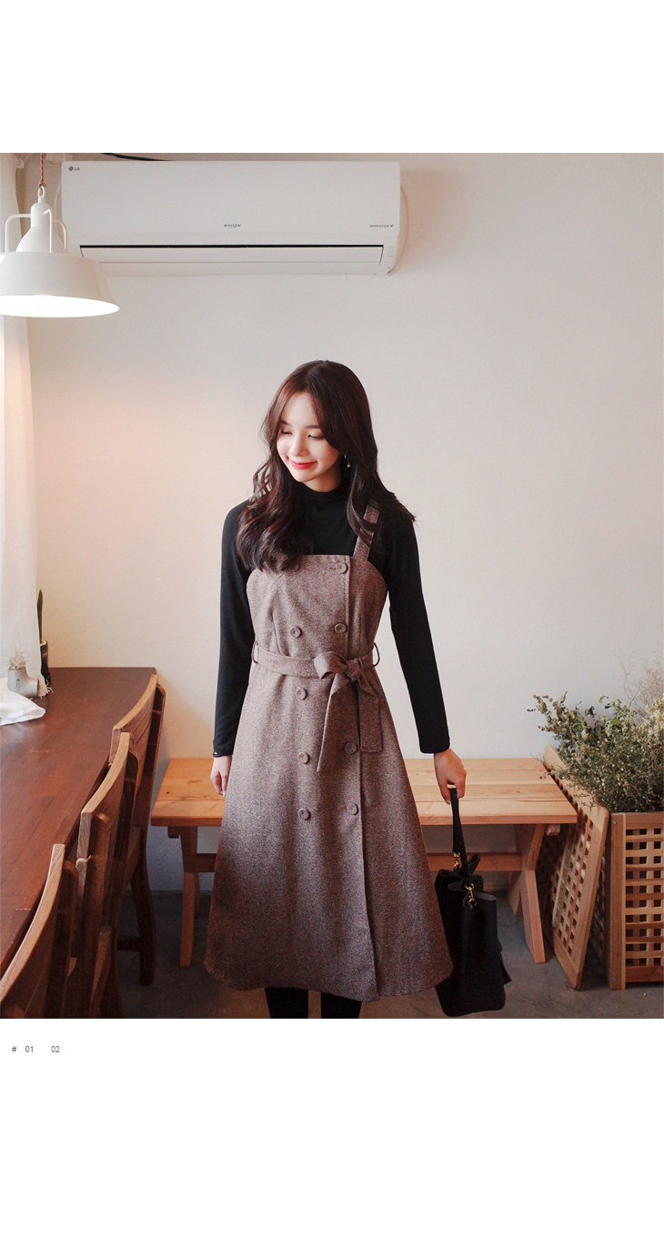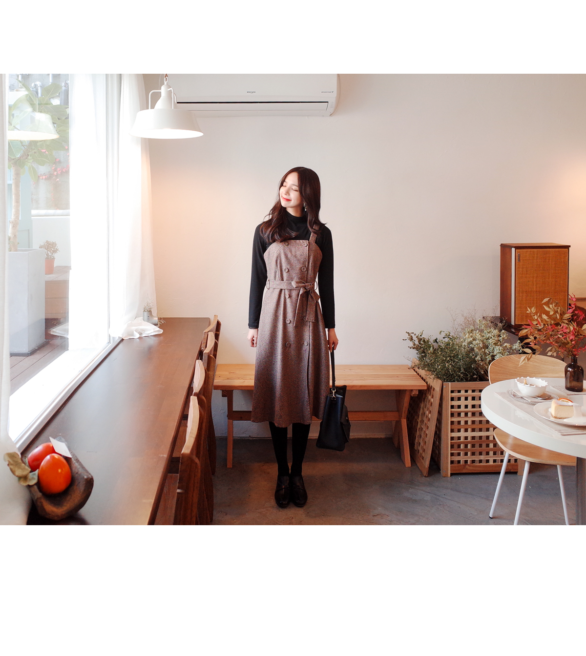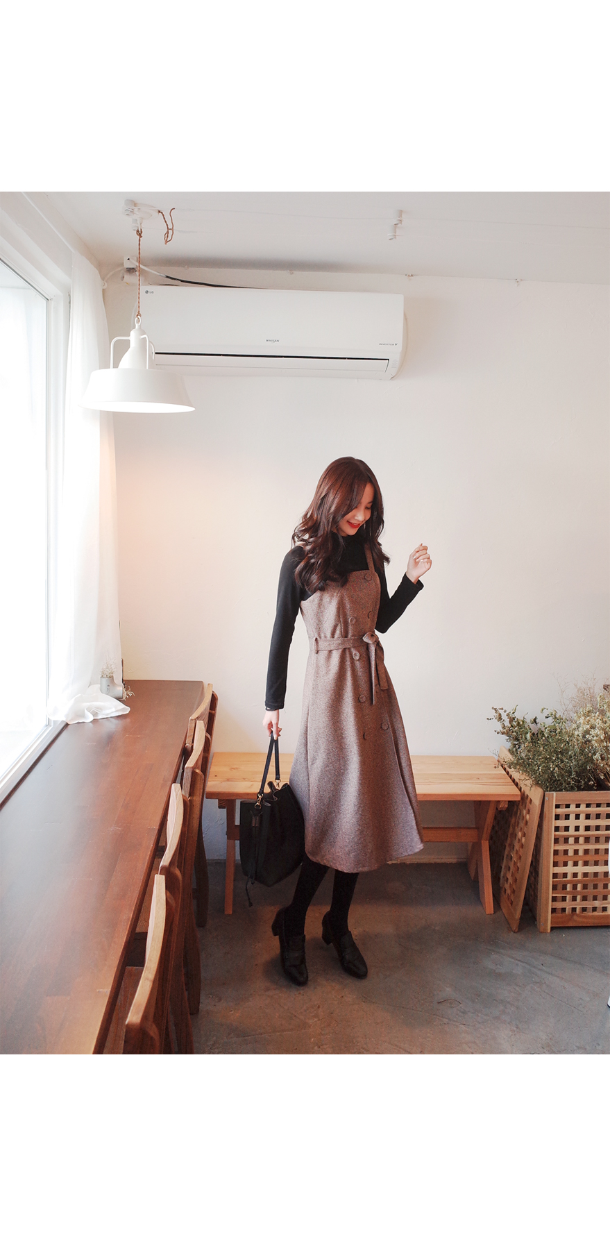 블락탑과 허리끈라인이 고급스러운 더블버튼 원피스가 세트에요