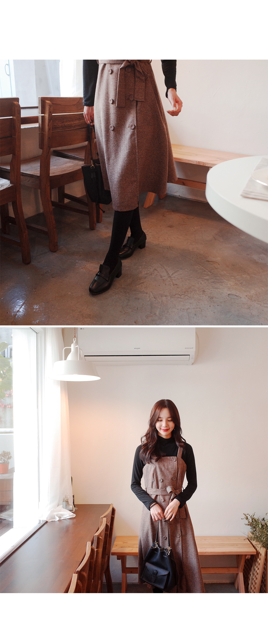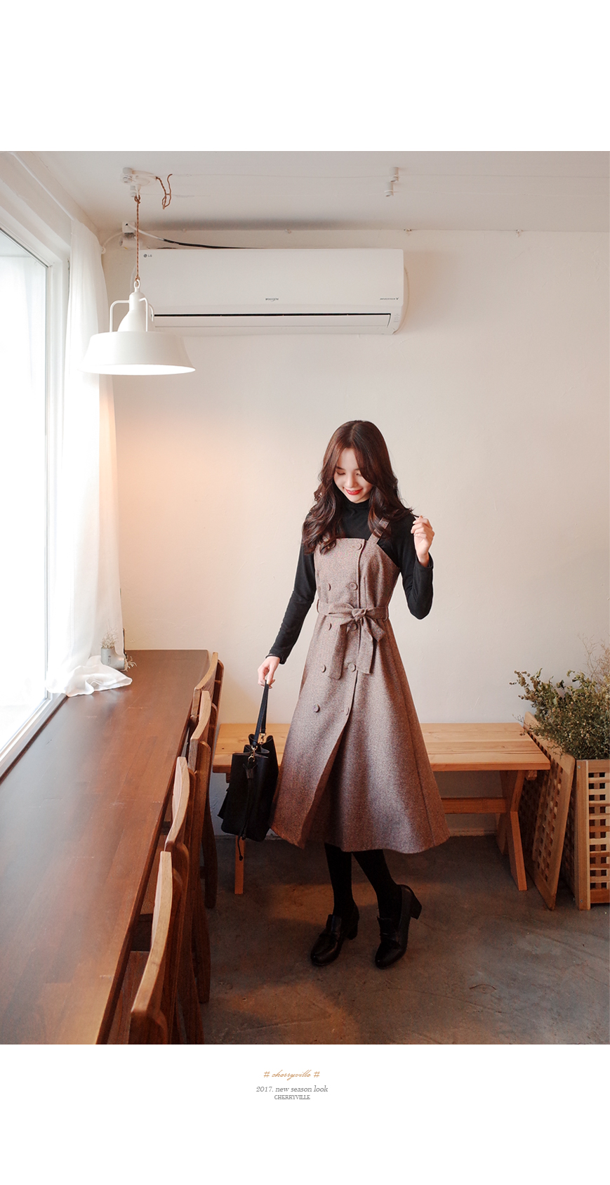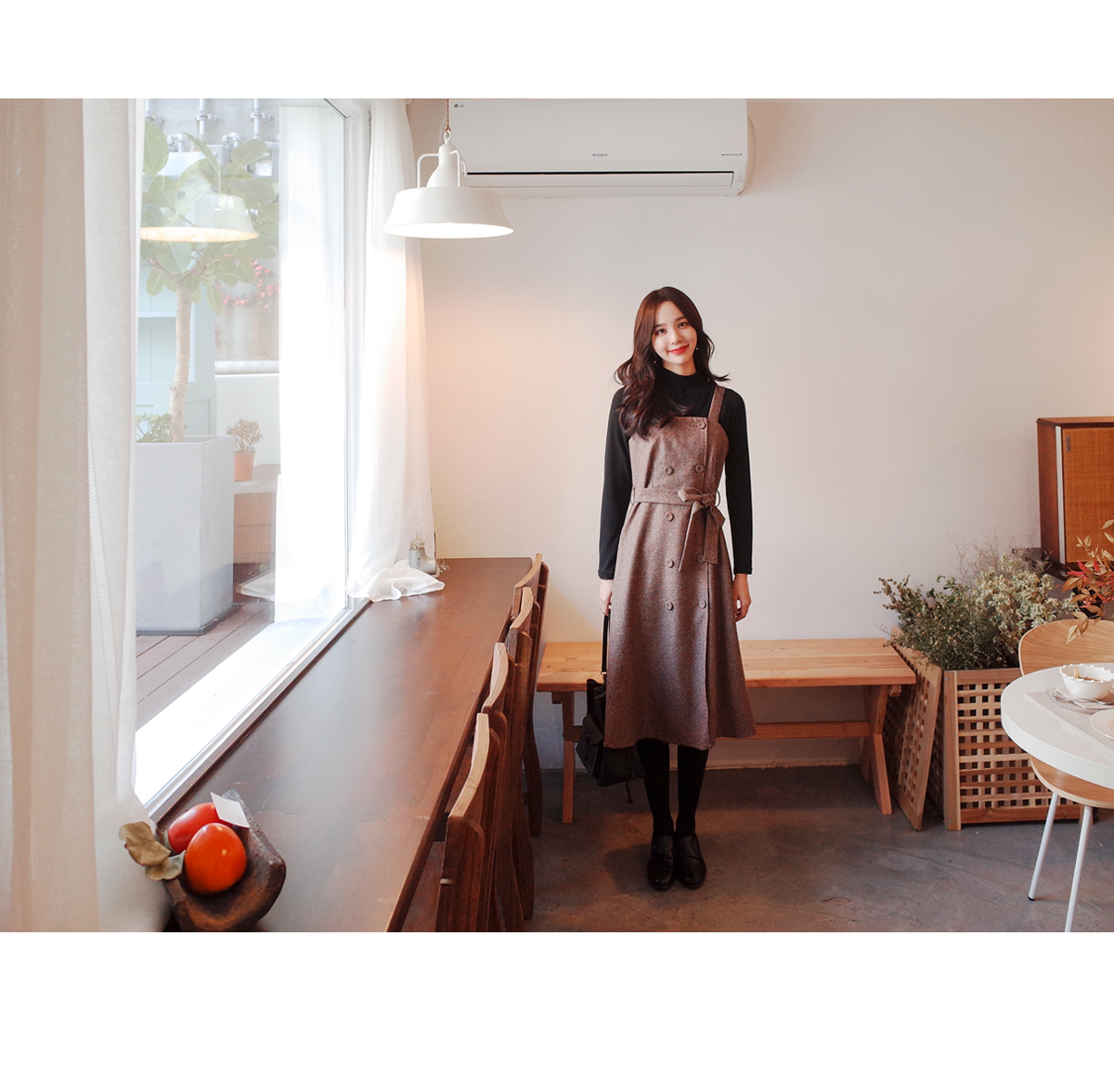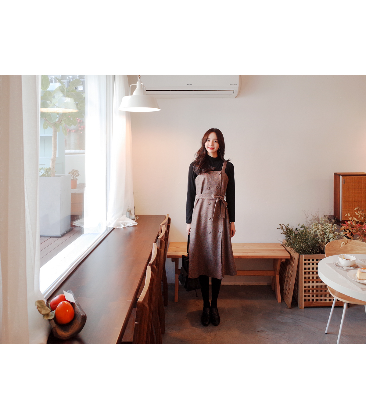 블락탑과 허리끈라인이 고급스러운 더블버튼 원피스가 세트에요