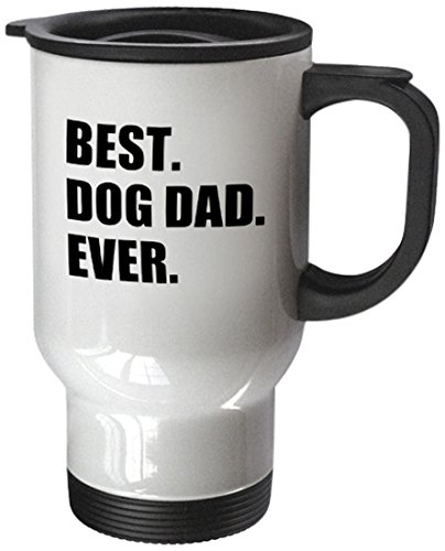 3dRose tm_184992_1 Best Dog Dad Ever Fun Pet Owner Gifts for Him Animal Lover Text Stainless Steel Travel Mug, 14-Ounce, White