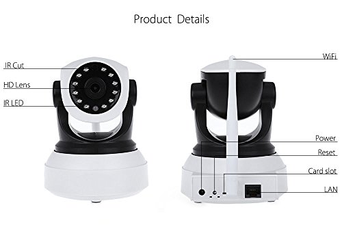 -. Feature : 24/7 Live Monitoring: Let the surveillance camera be your eyes by scheduling surveillance when you are away from home, set up motion detection and get instant notification when camera observes motion; 10M(33Ft) Infrared Night Vision so you can see whats going on even in the dark / Alerts and Snapshots: Receive real-time Activity Alerts by ringing or send emails to user with a photo of the event. Moblie App allows you to customize your settings according to your preferences: defined activity regions, camera sharing, customize alert schedules, and more. (Available for iOS and Android) / Nanny/Pet/Baby indoor Real-time Monitor with Full PTZ Control: Built-in speaker and microphone that lets you listen and respond through the app. Speak up to get someone's attention, or tell the dog to get off the couch. / Quick, Easy Setup: SIEGES network cameras were designed to be installed by people just like you--not IT experts. Plug in Cam and download the mobile app to get started. / Pan & Tilt- Control movement of Cam from your mobile device so can get a 360 view all the time. (Pan horizontally up to 355°, tilt vertically up to 100°) 24-hour video or alarm video and secure your videos on a plug-in 32G micro SD card (not included) in 720P HD, own your video content and access video history anytime.
