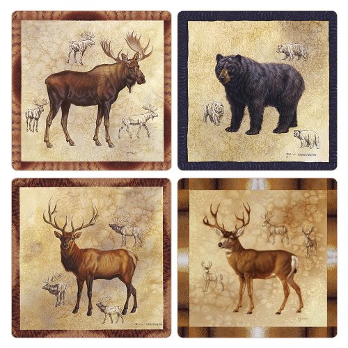 CoasterStone AS8660 Absorbent Coasters, 4-1/4-Inch, Rocky Mountain Moose Bear Elk Mule Deer, Set of 4
