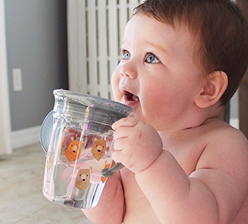 -. Feature : No Spill 360 degree pressure sensitive silicone rim allows your child to drink from anywhere on the rim. Touch Flo Technology allows liquid to only pass through when your child sips from the rim. / The Easy Grip twin handles are sized to fit your child's grasp and help your child guide the cup to their mouth and drink by themselves. / Made of extra strong, lightweight and crystal clear Tritan from Eastman. The cup is suitable for the top rack of the dishwasher. / 1 pack, 8 oz / 240 ml, 6 Months +, BPA Free / Colors may vary. You will get one of the following colors/ P.R.Ints: Gray bear P.R.Int, Gray rain P.R.Int, Red penguin, Purple hearts, Pink flowers, Aqua dinosaurs